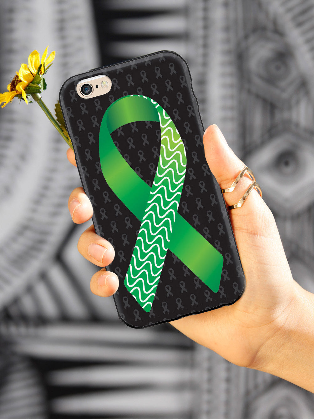 Green and Wavy Lines Awareness Ribbon - Black Case
