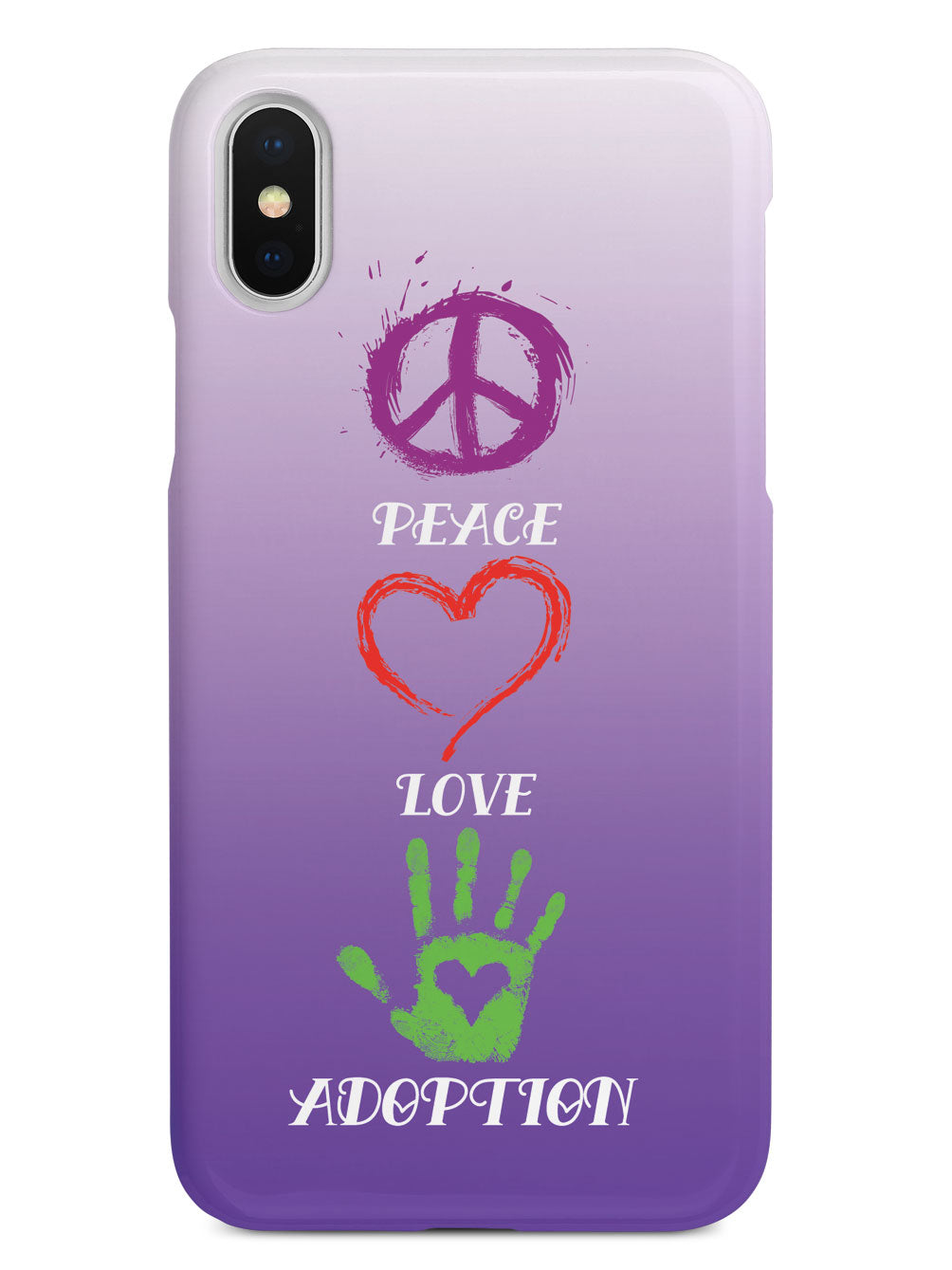 Give your device a unique style all its own. This Peace, Love, Adoption - White case was professionally created and printed in the United States. Textured printing raises parts of the images, creating a unique feel like no other case!