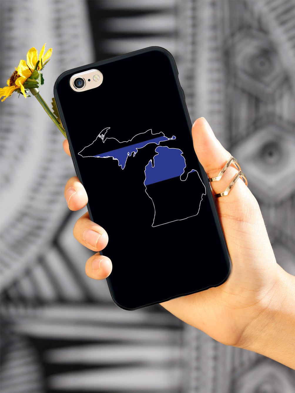 Give your device a unique style all its own. This Thin Blue Line - Michigan Case was professionally created and printed in the United States in support of Michigan state law enforcement! Textured printing raises parts of the images, creating a unique feel like no other case.