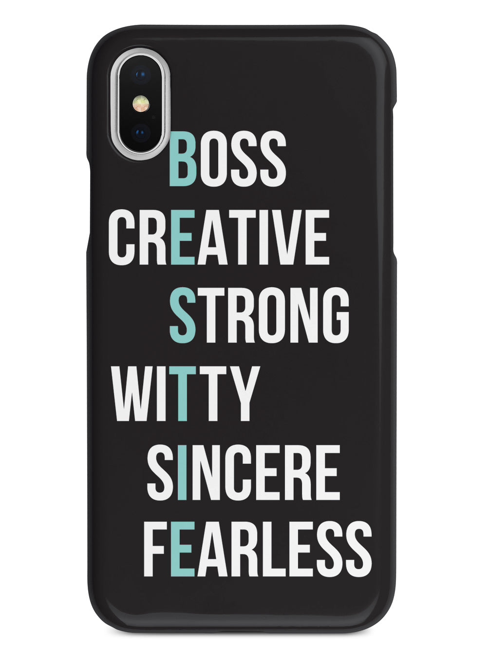 Give your device a unique style all its own. This BESTIE - Teal on Black Case was professionally created and printed in the United States for all the besties out there! Textured printing raises parts of the images, creating a unique feel like no other case.