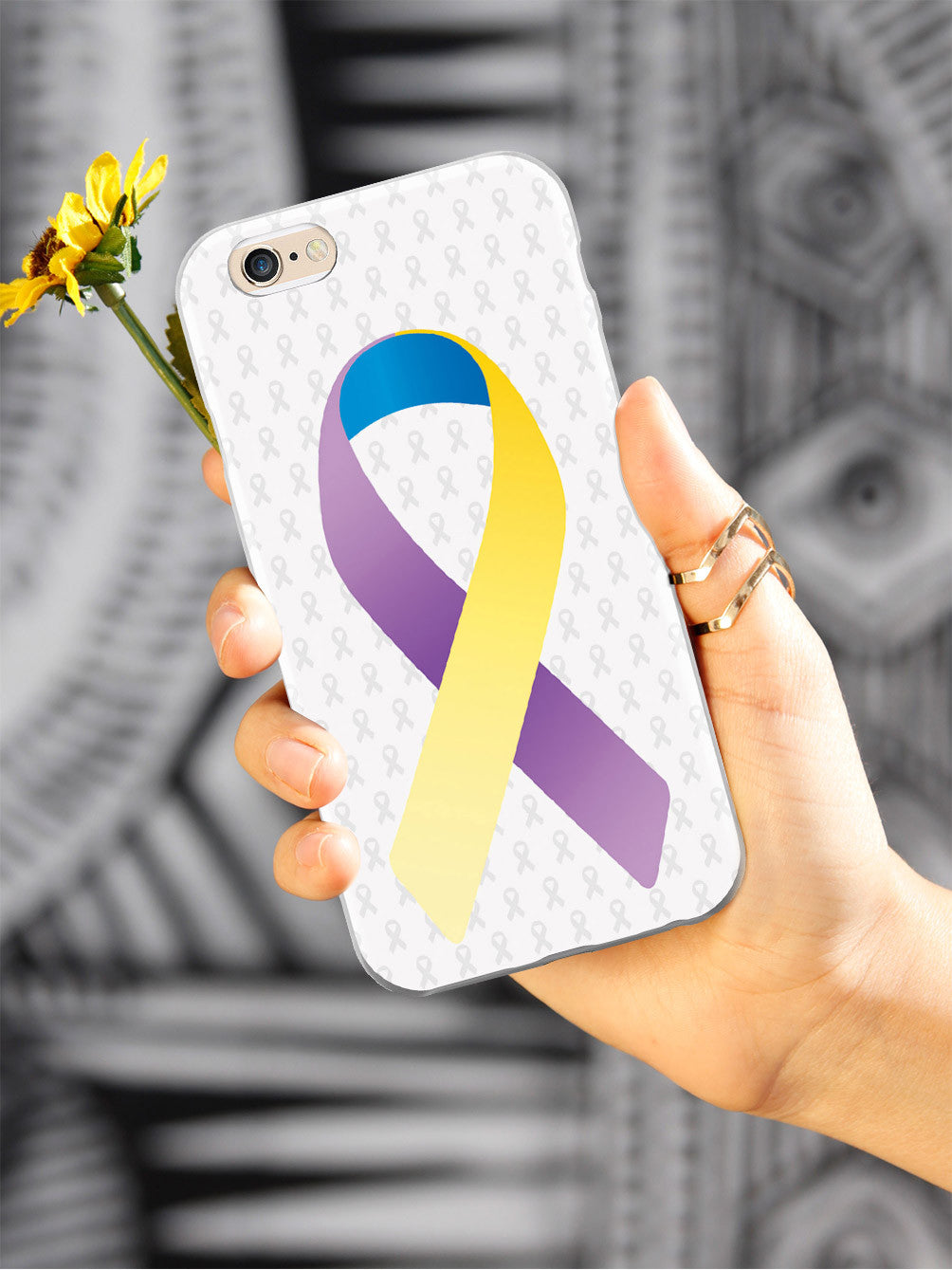 Give your device a unique style all its own. This Bladder Cancer Awareness Ribbon - White Case was professionally created and printed in the United States in support of anyone with bladder cancer! Textured printing raises parts of the images, creating a unique feel like no other case.