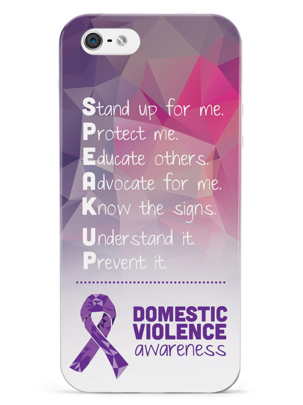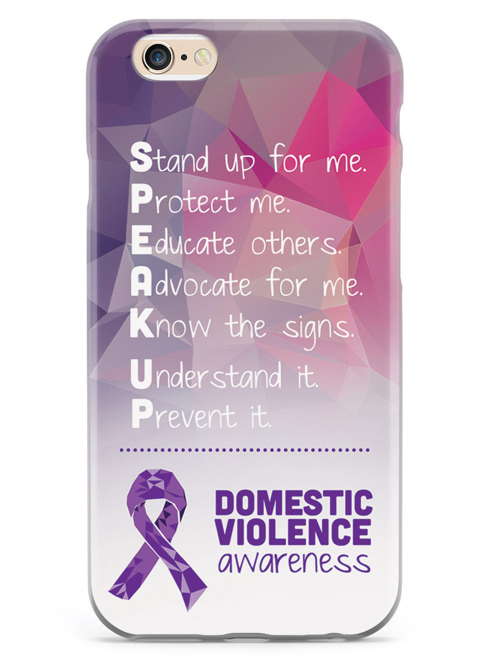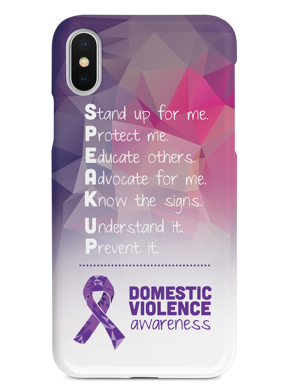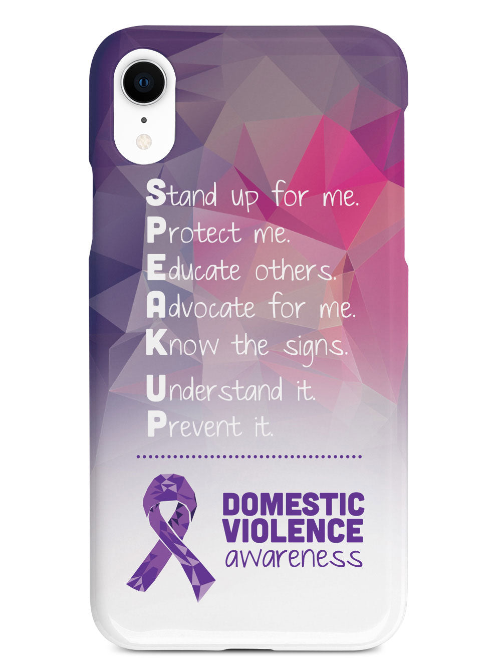 Give your device a unique style all its own. The Domestic Violence Awareness - Speak Up! case was professionally created and printed in the United States to help raise awarenss. A portion of proceeds go to a select cause. Textured printing raises parts of the images, creating a unique feel like no other case!