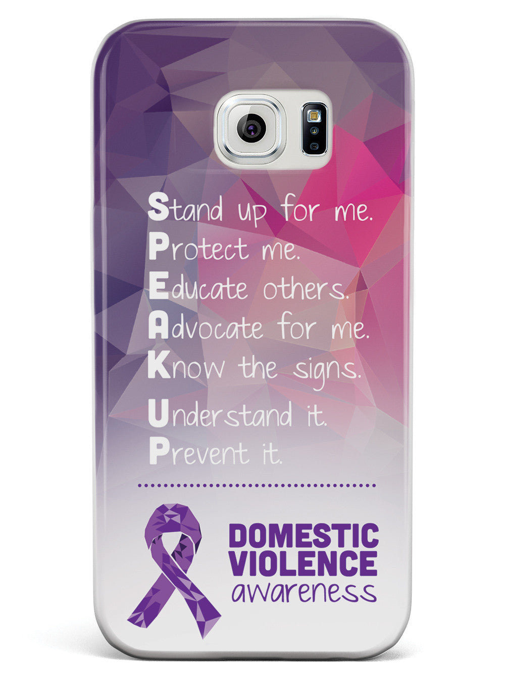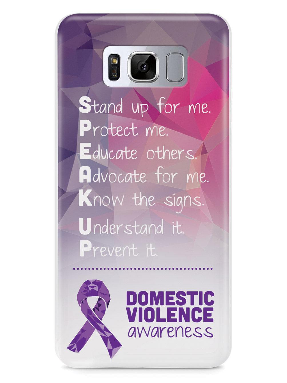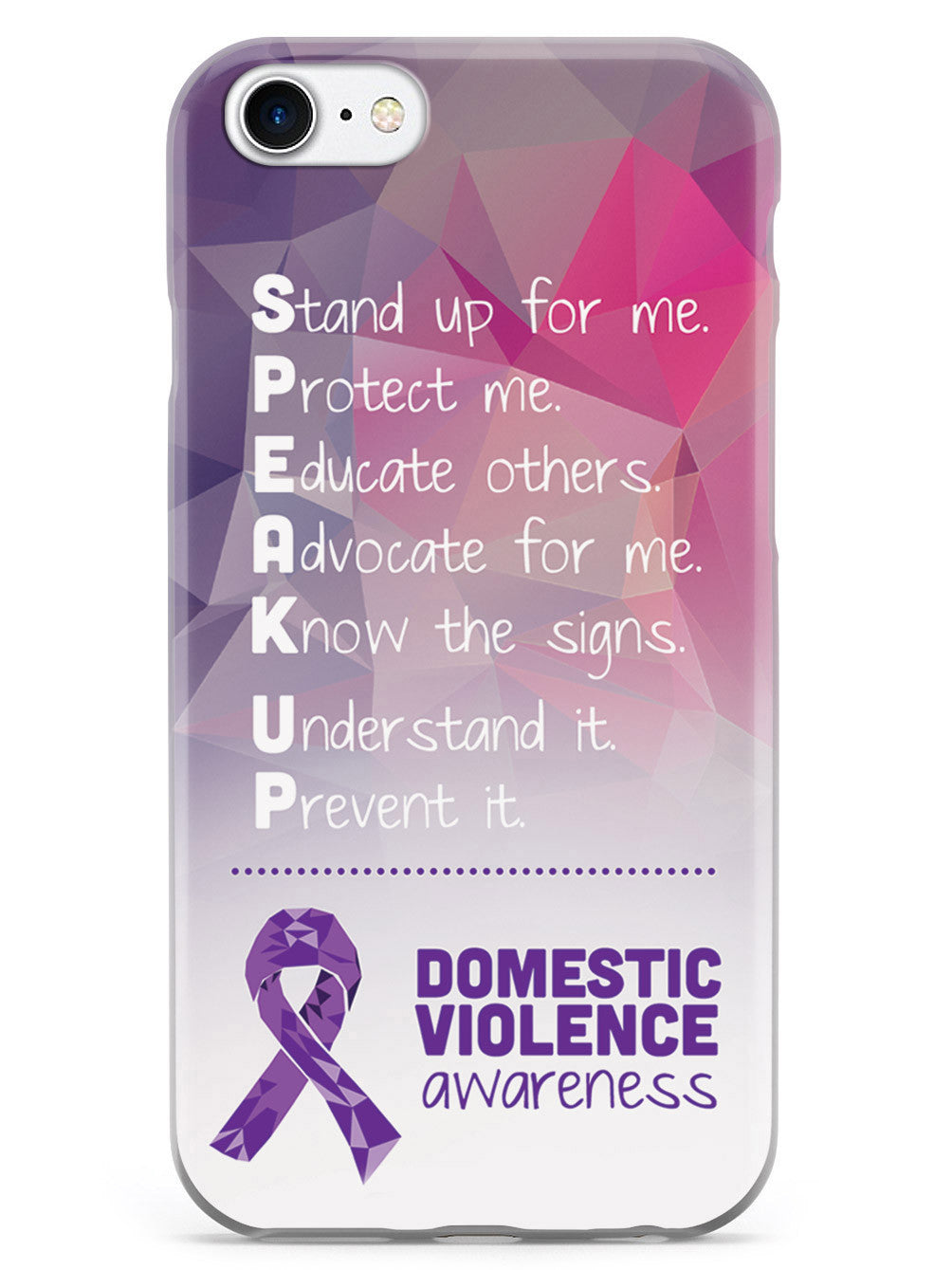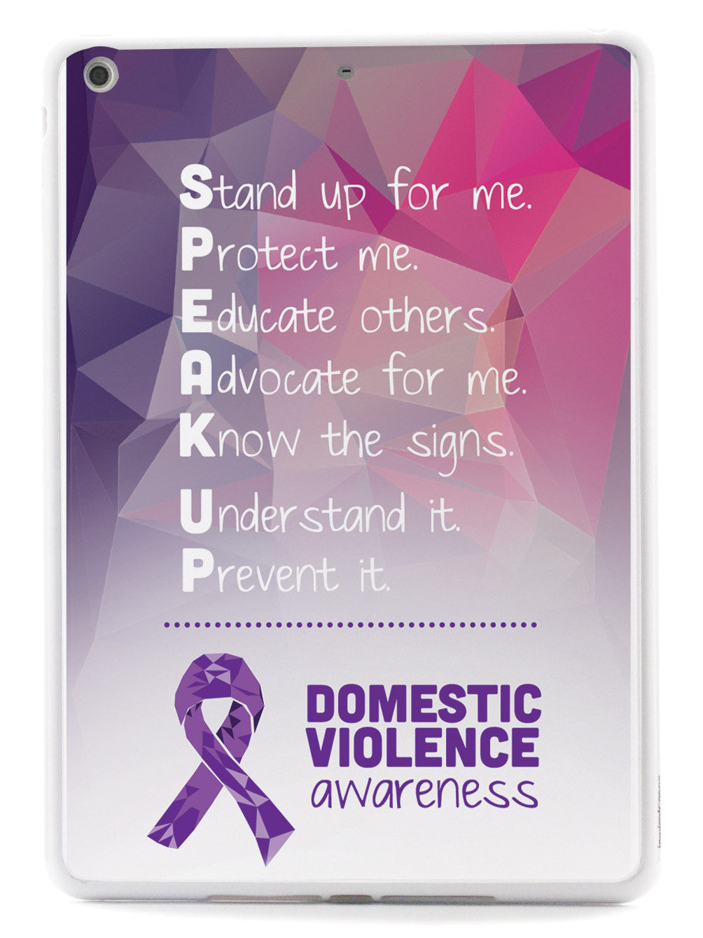 Give your device a unique style all its own. The Domestic Violence Awareness - Speak Up! case was professionally created and printed in the United States to help raise awarenss. A portion of proceeds go to a select cause. Textured printing raises parts of the images, creating a unique feel like no other case!