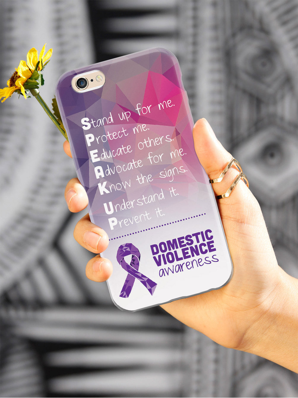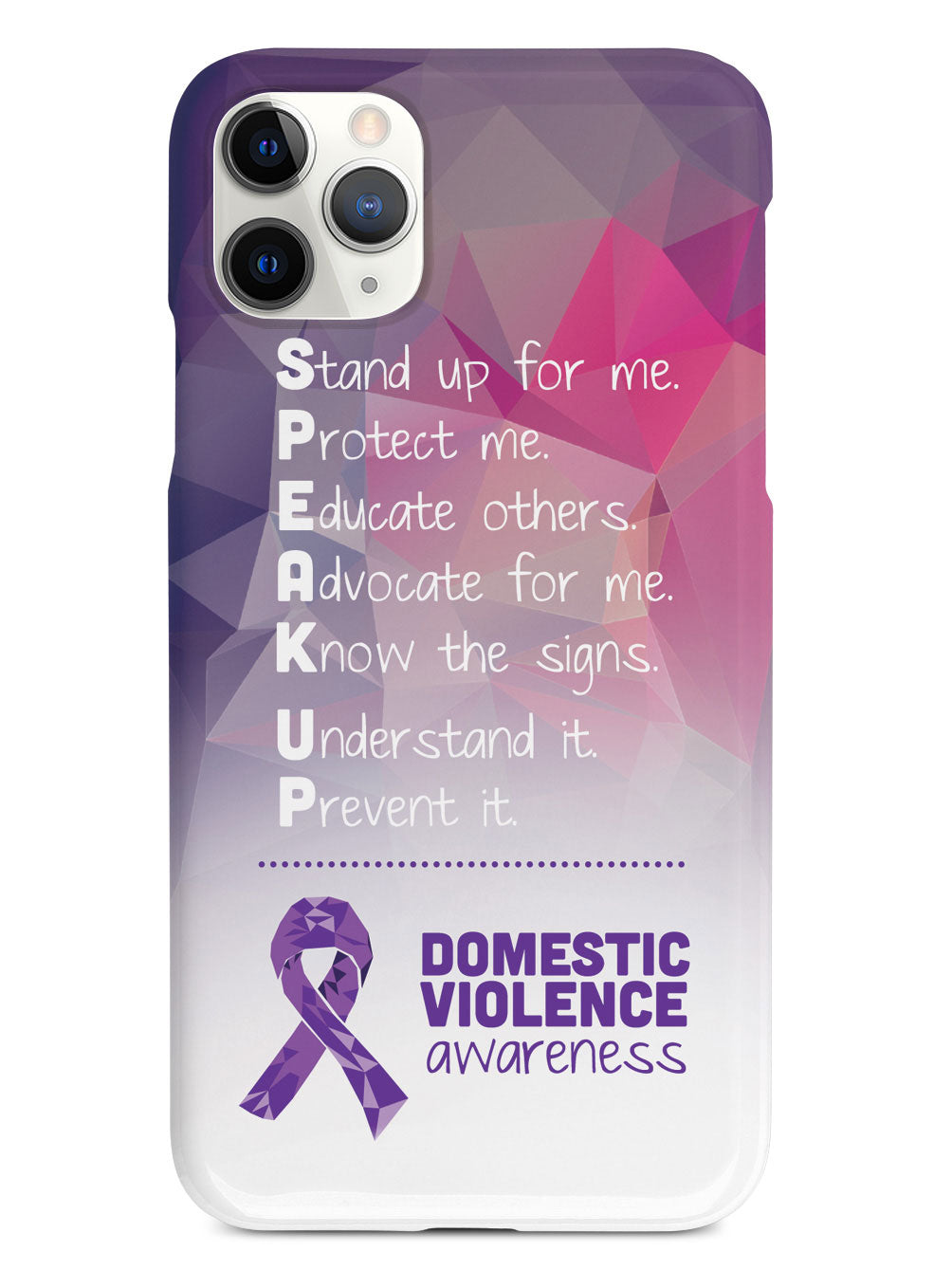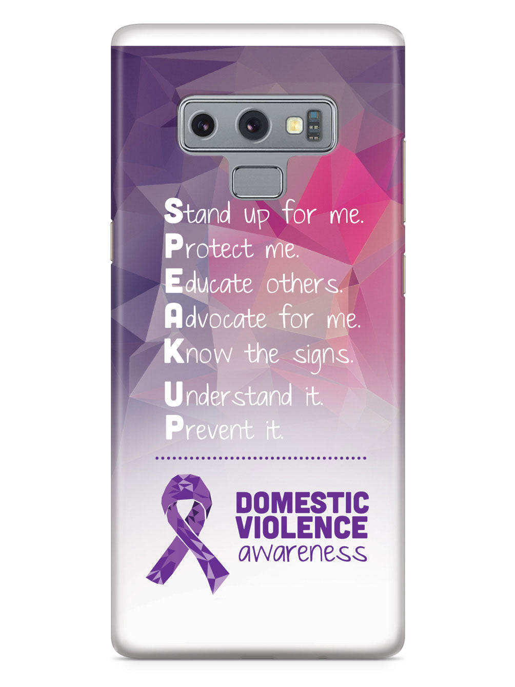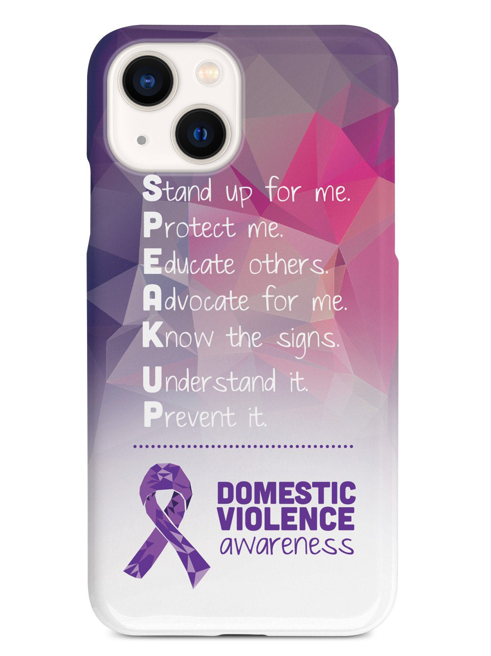 Give your device a unique style all its own. The Domestic Violence Awareness - Speak Up! case was professionally created and printed in the United States to help raise awarenss. A portion of proceeds go to a select cause. Textured printing raises parts of the images, creating a unique feel like no other case!