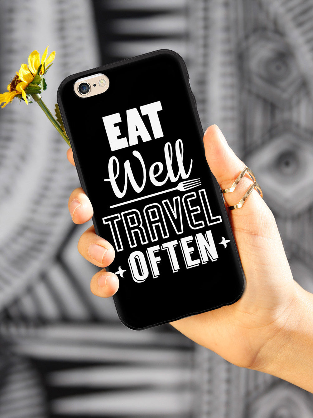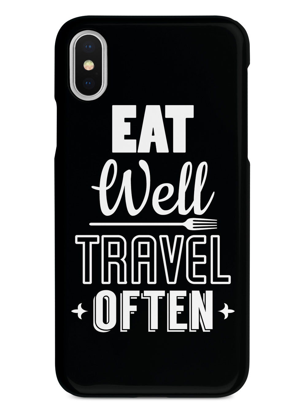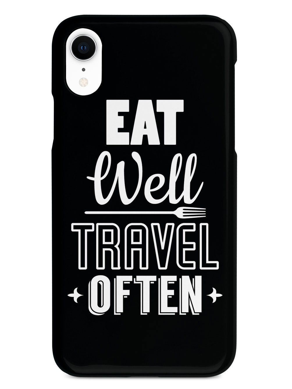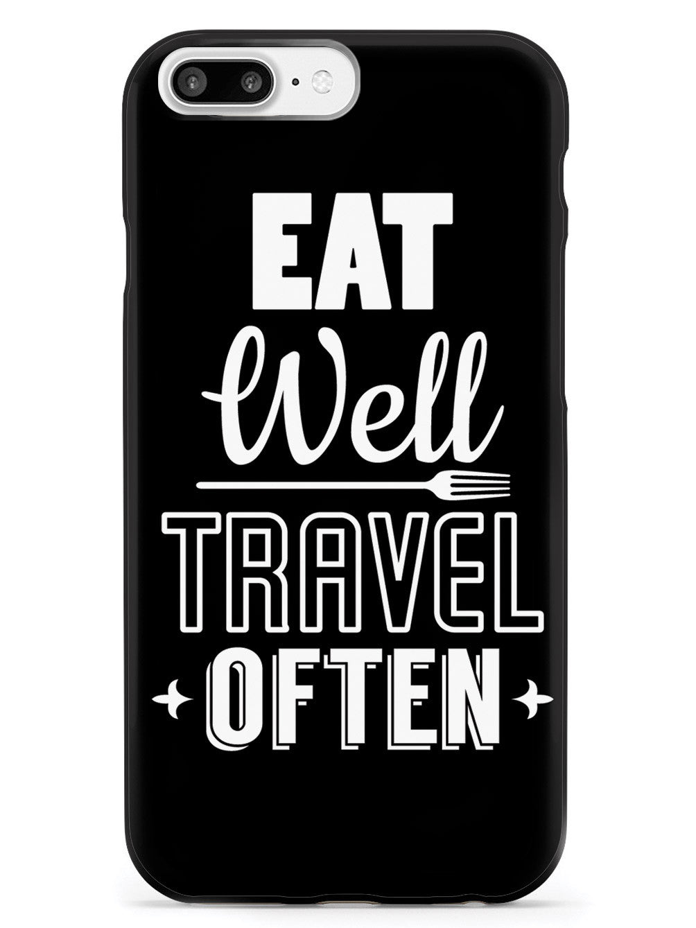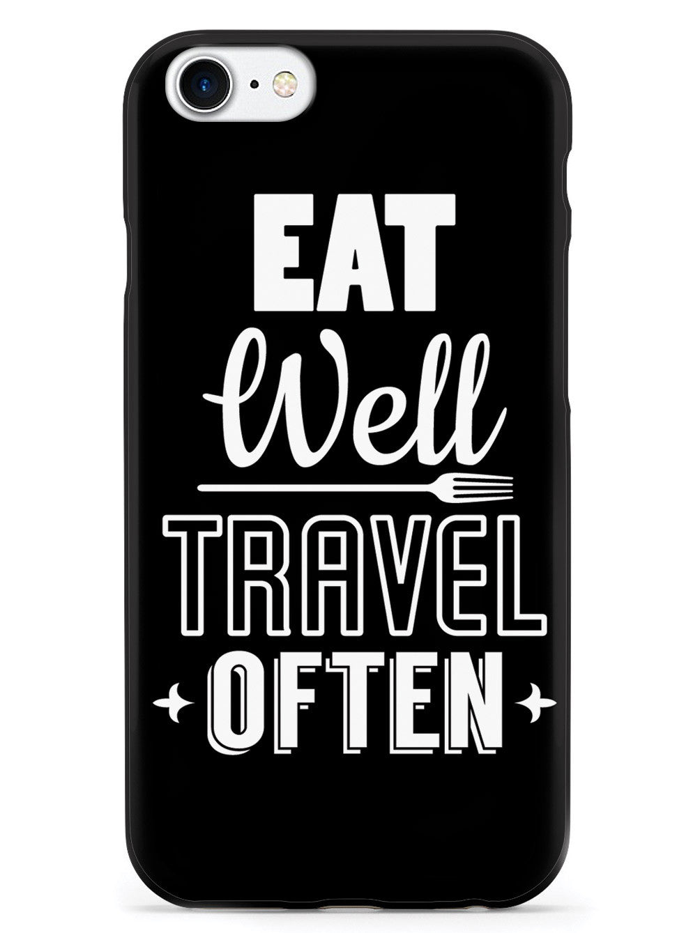 Give your device a unique style all its own. This Eat Well, Travel Often - Black Case was professionally created and printed in the United States for anyone that loves to eat and travel! Textured printing raises parts of the images, creating a unique feel like no other case.