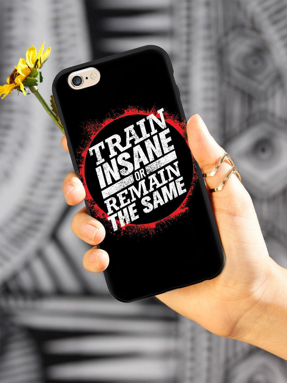 Give your device a unique style all its own. This Train Insane or Remain the Same - Black Case was professionally created and printed in the United States for anyone who needs a little motivation to keep going! Textured printing raises parts of the images, creating a unique feel like no other case.